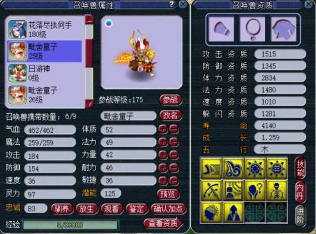最终合出来的是一只拥有着十个技能的毗舍童子,只有一个技能没有合上去,而且合出来的这只毗舍童子的资质还特别的好,成长达到了1.259,攻击资质达到了1515,速度资质也达到了四位数,后期可以续通过元宵来补充,看了这组炼妖小编就理解为什么日游神这么受欢迎了,因为日游神的成长能够满足大多数玩家炼妖的需求,就像是上面的这种多技能的召唤兽,随便找一只五技能日游神就有可能会合出来,而且炼妖的成本还很低。
