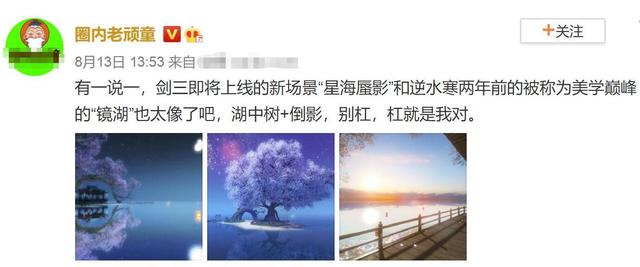 不单单是自己游戏里,在外面逆水寒OL也是四处碰瓷,尤其是喜欢盯着领域内的竞品剑网三找茬。
