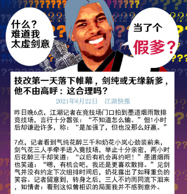 除了这点外,恐怕让剑纯玩家们失望的还有另外一点,那就是这次加强的幅度并没有想象中的大。剑网三剑纯主播“墨道烟雨”在技改更新之后,带着气花亲友兴高采烈地进入了竞技场,扬言“不知道怎么输”。然而就在一个小时之后,他原先的乐观已消失殆尽,默默地与气花挥手告别。于是乎,相关的段子立即就出炉了: