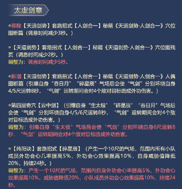 在技改发布之前,剑纯玩家一直都是躺平的咸鱼。由于本赛季的弱势,剑纯输出乏力,且无法适应现在的版本,一度成为技改呼声最高的心法之一。而在前一段时间,官方发布了技改说明,其中针对剑纯的加强改动,终于将这群剑纯玩家们从躺平状态中重新拉了起来。