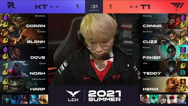 最后一场比赛KT是把卢锡安抢了下来,赛纳依旧是没ban但同样没有选出来,而Canna是掏出了他百分百胜率的猴子。KT这场是把第一条小龙和峡谷先锋都收入囊中,并且第二波峡谷先锋团战KT先击杀了Cuzz的赵信,随后持续追击打出了0换3,这波之后KT好像有些飘了,20分钟KT强打大龙给了T1机会,Faker一个三杀收尾,T1这波大龙团直接把前期的劣势打了回来。