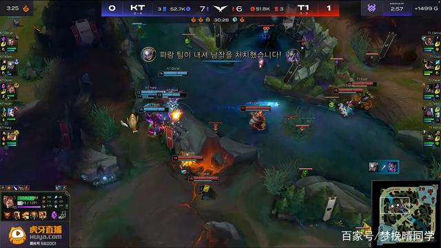 T1拿下本次第四条小龙后还把大龙收入囊中,双方打成了2换2,随后T1推掉了KT中下两路高地。第二波大龙团战Faker卡牌大招绕后,正面战场赛纳被杰斯秒掉,T1轻松打出0换3后一波推平了KT的主水晶。