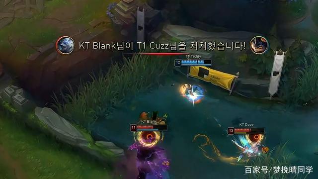 第二场比赛的BP阶段可以注意到一个细节,赛纳在没被ban的情况下两队都没有选择使用,T1可能是上次“世纪大战”终于悟出赛纳很有可能是版本陷阱,包括上场KT掏出了效果也不是很好,前期就被对线击杀。这场比赛KT又是针对中路两次击杀了Faker,Blank对老队员丝毫不手软,上路Canna的卢锡安同样阵亡了两次,游戏进行到30分钟,KT成功拿下大龙但撤退的路上被T1留下两人,这波总体而言还是KT更赚一些。