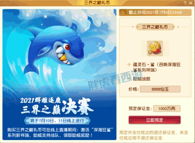 首先,你的角色本来就要有鲨鱼,其次你要抢到这次的礼包,价格是888元。