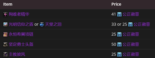 今天给大家带来第一阶段的奶骑BIS装备推荐指南。本文翻译自Wowhead,并做了一些增删。第一阶段的公正徽章主要开销内容如下: