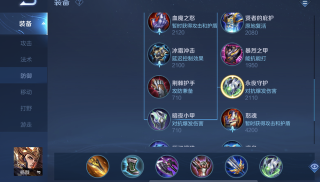 接下来的出装和正常杨戬的出装没有什么区别,韧性鞋,黑切,反甲,破军。这四件装备可以说是杨戬的必出装备。黑切,破军提升杨戬的技能伤害,反甲增加坦度,已经反伤能力。更有利于杨戬近身作战。