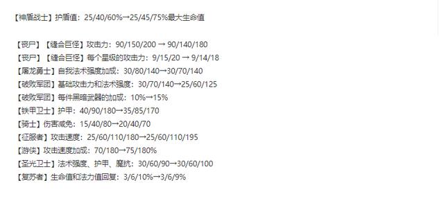 6复苏/9圣光/8征服羁绊,8征服/9圣光增强,6复苏削弱,但由于这3大羁绊属于需要于转职的大羁绊,对版本影响不大。