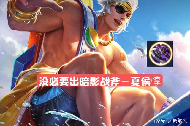 现在的夏侯惇出装基本上都是全防御装备,很少出输出装,这个英雄就是靠技能和自身的坦度一直粘着敌人打,并不需要去秒人,所以没必要出暗影战斧。