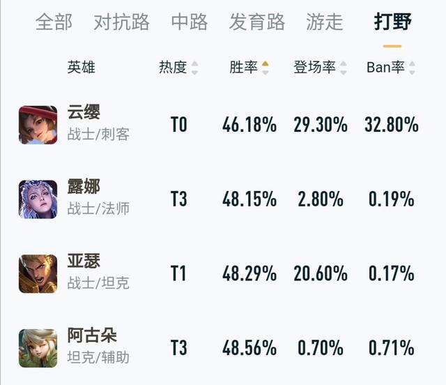绝在我看来新赛季初最弱的打野英雄当属云缨,当然,我之所以把她称之为赛季出的最弱,这也意味着其实这个英雄还没有将他的潜能和打法体系完全的公布出来,所以导致很多玩家使用这个英雄打野时处于一种乱玩,或者自我摸索的姿态,只发挥了不到这个英雄近五成的能力,所以导致了无论在高端局还是在普通的排位当中,她的胜率依旧排在打野的最末端,即便是他身为T0,但这并不意味着这个英雄可以用于排位。