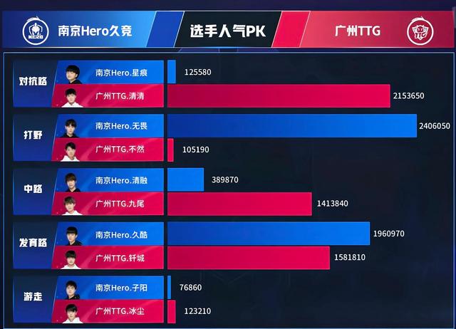 Hero久竞与广州TTG,这两支战队的人气都不高,在所有的战队人气排行榜中,只能排在四-五位,而且人气值与第一相差非常大。所以也就注定了本次春季赛总决赛的人气不会太高。