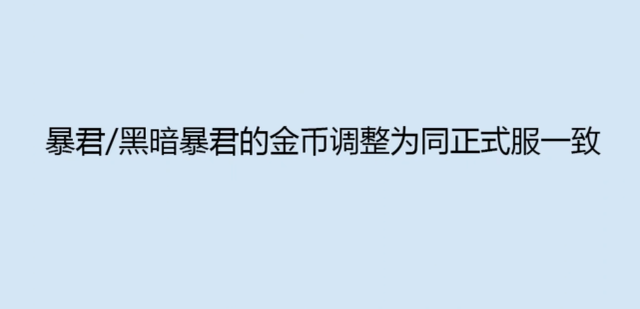 总得来说,这两个英雄的优化,都是非常重要的,绝对可以提升这两个英雄的强度,特别是猴子啊,最近的人气真的是高了不少,除了那种特别高端的局,猴子经常都能看得到,这一切还是得益于最近的两次加强。除了两个英雄的改动,还有就是暴君机制的改动,之前体验服调整了一下暴君的金币,现在呢,体验服又把之前的那个改动回调至正式服,改了个寂寞。