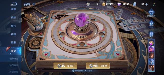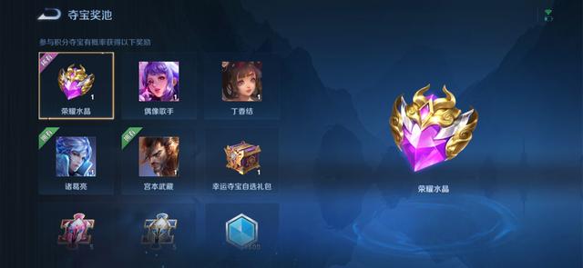 积分夺宝商店是三者中最昂贵的一个商店,当然水晶商店中的皮肤也是比其他商店要好的。在参与抽取荣耀水晶的过程中,需要幸运值达到一定的数值才可获得,当然也有很多欧皇以非常低的幸运值抽取到了一颗水晶。在抽取过程中也有机会获得皮肤和英雄。