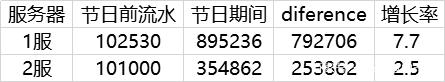 这时,就可以利用横向对比法进行评估。分别可以在两个服分别观察,针对1服做拉收活动,2服不做拉收活动,通过两个服务器对比,判断活动是否有效果。