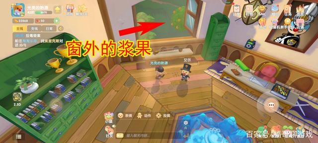 大家都知道在“摩尔庄园”当中,黄色的浆果可以说是最为普遍了,很多地图中也都能看到它的身影~这不,今天有一个玩家在做主线任务时,在进入艾尔的警局和艾尔对话时,突然从房间开着的窗户外面看到了一株黄色的浆果,于是在从警局出来之后,这个玩家也是准备到窗户的外面摘浆果。