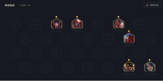 6神盾T位较多,盲僧减攻速、潘森减伤,芮尔团控,巨魔放前排咬主T加强坦度,凯南再启动发挥团控,如果走秘术可以用莫甘娜(带复活甲)代替芮尔做团控。这一整套前排的硬度很高,拖的时间越久,神盾羁绊增加的攻击力越高,双C就越强。
