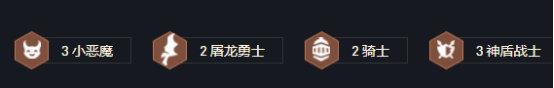 开局优先抢大剑和攻速,前期过渡阵容推荐以下两套。3神盾分别搭配【3小恶魔】和【3龙族】,两种过渡阵容都很强势,因为6神盾是前中期阵容,前期连胜越早越好。