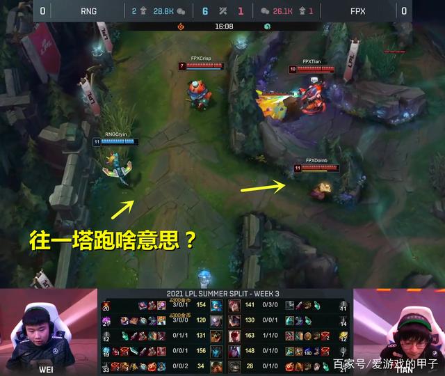 这种情况下哪怕是路人玩家都知道要退回二塔防止Gank,可Cryin却不退反进,居然往一塔那里跑,这不是等于让FPX来Gank吗?结果Cryin被越塔击杀,RNG因此断了节奏。