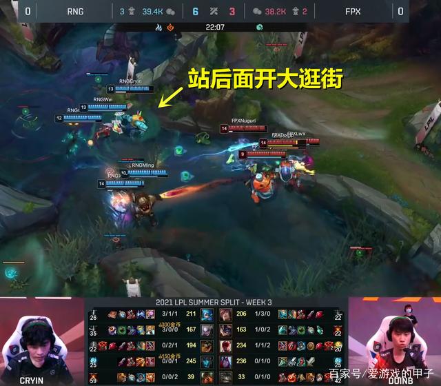 确实,这一战FPX中单Doinb状态爆种,大杀四方,几乎是凭一己之力打崩了RNG,而这一切都是因为Cryin,那么Cryin到底和Doinb差在哪?才能养出来一个能一打五的Doinb呢?现在甲子就给大家详细分析一下。