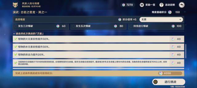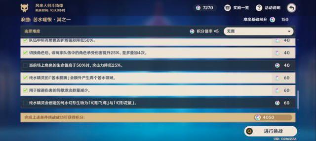 但是有钟离的话,这一关还是要带的,毕竟柱子是可以爬上去躲伤害的,再带一个法师型角色就相当完美了。加分方面敌人生命值和角色受伤攻击力降低可以拉满,其次就是选一些艺能了,应该可以肝到4050分。