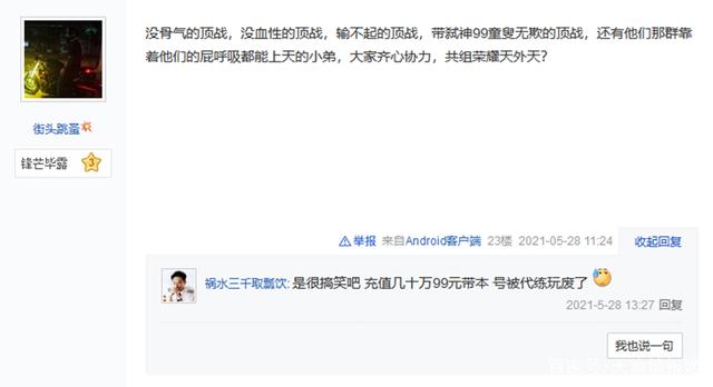 事后,有在主战场见证了全过程的玩家将这件事发到了贴吧,和大家分享吃瘪的氪金大佬,回复中无不拍手称赞,纷纷支持这种反对霸服的行为。