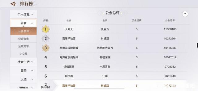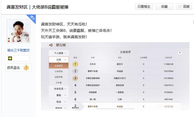 龚喜发财的榜一公会一直以来都是由天外天来坐的,会长夏百万虽然不是特别牛的玩家,但他吸纳了包括总战力榜一在内的多名榜前高战玩家,整个战力排行榜放眼望去,天外天占了多半江山。
