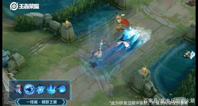 首先看看大乔的被动川流不息,感觉就像水波一样,很符合被动的名字。一技能则是黑白两只鲤鱼沿着河流跳动的样子,二技能,大家都知道是大乔放个圈回城的,白鹤梁神女二技能的圈里则有黑白两只鲤鱼盘旋在空中,非常优美。