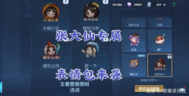 王者荣耀表情系统自上线以来就受到无数好评,除了能和队友交流外,在嘲讽敌人时简直不要太欢乐,而张大仙作为王者中热度数一数二的主播,这次也将迎来专属表情,牌面这方面可谓拉满了,早在之前就有联动王者的语音“冰心一出,游戏结束”,没想到现在又要出张大仙的专属表情了!
