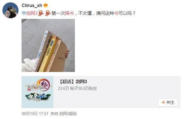 当然,也有第一次加入捐书活动的新玩家,在发文询问应该捐赠什么的书籍和注意事项。发问之后立马就有玩家为其解答,告知了这位“萌新”自己的一些经验。不仅有一堆常年参与公益的正能量老手,还带动着更多新人参与公益事业,这种主动积极参加公益事业并有丰富经验的玩家群体真的很少见,剑网三这群有爱玩家让人点赞。