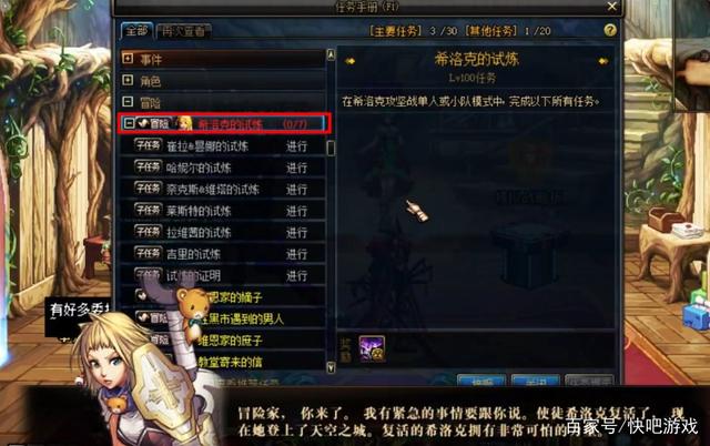 冒险任务是玩家在完成希洛克团本前置任务后才会出现,希洛克团本的前置任务是极诣·剑魂索德罗斯。玩家完成极诣·剑魂索德罗斯任务及后续的主线任务后,才会解锁希洛克团本攻坚频道以及希洛克团本的试炼任务。