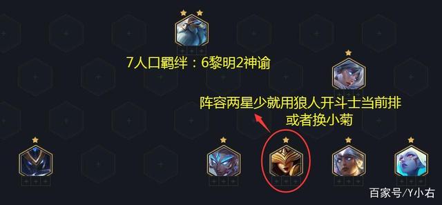 7人口优先开6黎明,剩下一个人口可以选择辛德拉或者小菊开神谕,如果阵容前排不够可以换狼人开斗士。