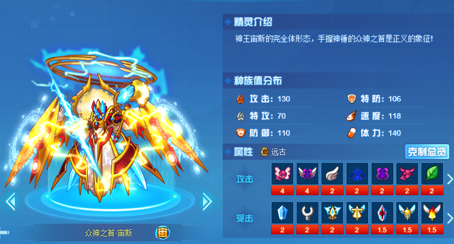 宙斯是第3代神王,而他的父亲是克罗诺斯,在游戏里也是一只100块钱的精灵,擅长的技能是控场,他凭借着极其夸张的控场能力,在巅峰中挺恶心人的!而且除了在pvp中,在pve中同样有着不错的效果。它的被动效果是当死亡之后下一只登场的精灵,将受到的伤害被锁定在250,只要不是100%秒杀的 boss,该被动效果都有效。