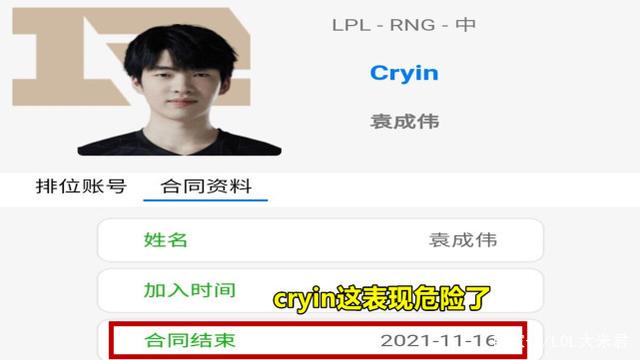 除此之外cryin和RNG的合同也已经被曝光,将在S11总决赛结束后就到期,如果cryin继续这样表现的话,下一份合同有点让人担心。要知道今年是cryin新秀合同的最后一年,如果打好的话,下一份合同的年薪就是百万起步,现在这局面有点尴尬了。