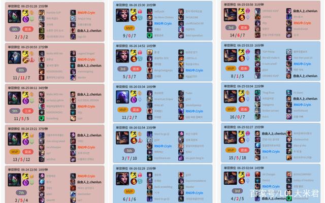 小米看法:cryin这名选手其实挺勤奋的,Rank数量也是非常多,但电子竞技天赋决定了一名选手的上限,cryin迟迟练不出来英雄,和天赋有很大关系,他应该算是那种体系团队选手。但LOL比赛单靠团队打法还危险,一代版本一代神,就看cryin接下来能够调整好心态,早点把英雄练出来了。