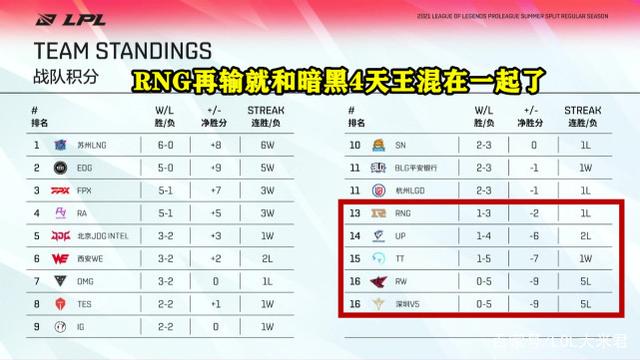 备受期待的LPL“双皇会”已经结束了,最终FPX以一个2-1击败了RNG战队,拿下了夏季赛第5胜,继续保留冲击第一的机会。而RNG在输掉这场比赛后,战绩下滑到了1胜3负,在输下去的话,就要和LPL暗黑4天王打成一片了。