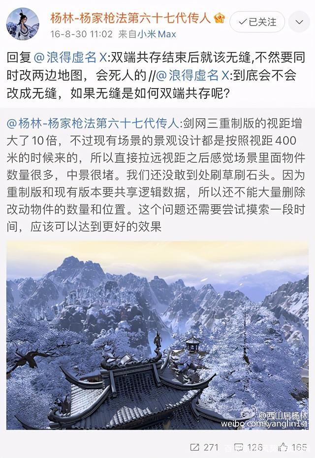 对于一个官方还没正式敲定要出的东西,为什么大家的关注度会那么高呢?这和饼叔在微博上多次与玩家的互动里提及到无缝地图有关。而且,郭炜炜和杨林一起在2017年接受采访的时候,也说过会考虑做无缝地图。