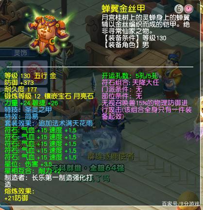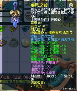 以129级为例,给大家讲述装备的配置。首先了解一下人物属性图,明人不说暗话,基本满符的,同时变了进阶小夜卡,经脉全点的面板,带了2个风带。硬件是我们全队最好的,基本达标12+8段。129级花果山,命中3513,伤害2961,防御1777,速度906。