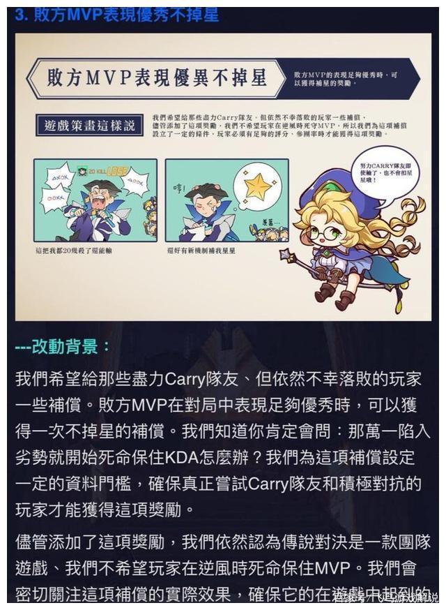 这是王者荣耀海外版-传说对决的更新公告,从公告中我们可以看得出来,败方MVP不掉星已经在这款游戏里面实行了。按理来说,这项技术应用到王者荣耀里面是十分简单的,但是腾讯也一直没有把这项改动真正应用到王者峡谷里面,这是为什么呢?