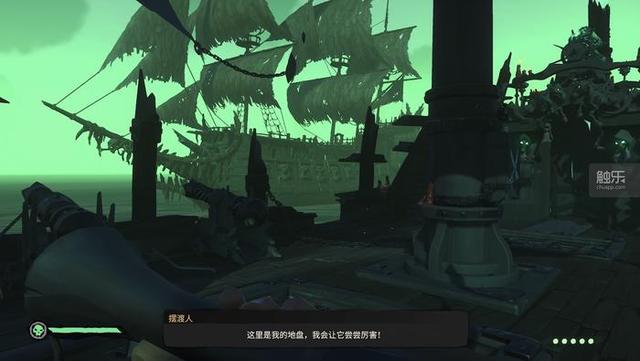 而且,根据我玩《盗贼之海》的经验来看,大部分的乐趣都来自于跟队友的互动。这有点像是个远程聚会游戏,是不太硬核的小型“MMO”。4个人站在即将沉没的甲板上,共同演奏一曲《风止船息》,然后愉快下线,这就是海盗生涯的日常。