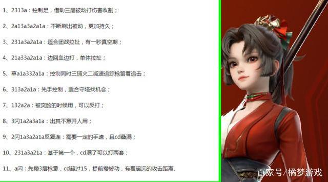 那么在理解了上述的文字之后,如果你还是觉得麻烦,就干脆直接背熟这11套连招口诀吧: