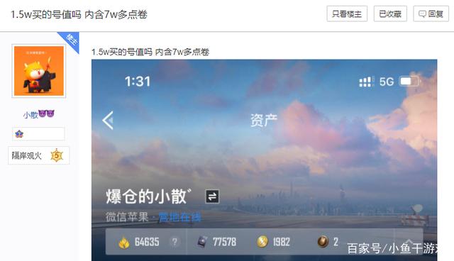 在这个新功能上线之后,有玩家就在游戏论坛中,晒出了自己花费1.5W购买的1个账号,并且询问网友到底值不值。小鱼干也是顺便给这位玩家“评估”一下,大家也可以来评估一下。