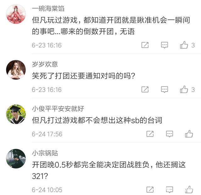 在剧中,许凯饰演男主陆思诚是队长,在比赛时他说了一句“三二一开团”的台词,又被网友质疑编剧“是不是没打过游戏”。
