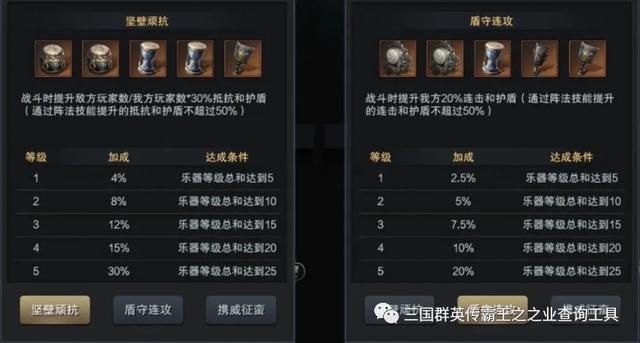 以风扬阵抗敌以攻技能为例,需要1巴雷鼓1商金鼓1羽水鼓2徽人征激活技能