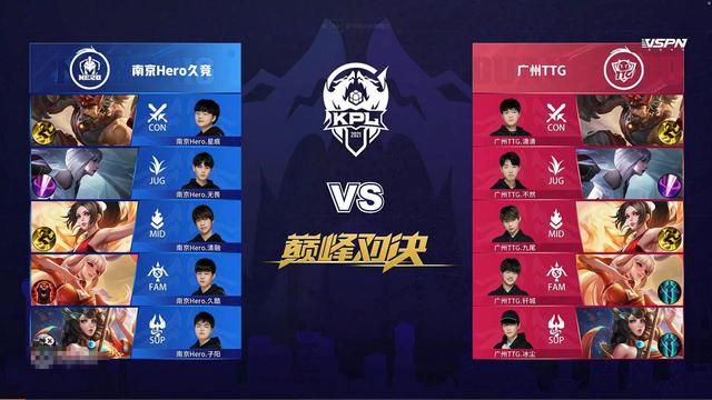 阵容分析:这局Hero与TTG阵容完全一致,双方教练也都是心有灵犀,但是由于Hero在蓝色方,所以大乔体系的实施更加流畅一些,除此之外,双方大乔,一个带的是净化,一个带的是干扰,显然Hero的大乔干扰更具进攻一些,也更符合蓝方选边,这是一场KPL最强的大乔配前期节奏体系。