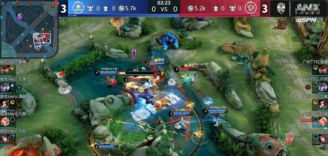 前期,奠定胜负的团战,可以看到,TTG的站位过于密集,开团点都是只有一个廉颇,北慕看到也觉得清清这一波后进场,给了Hero机会。双方阵容一致,C位输出空间至关重要,密集的站位,被左右夹击,C位根本不知道解决切团的廉颇,还是处理久酷的公孙离,导致TTG团战溃败,直接被斩四个人头。