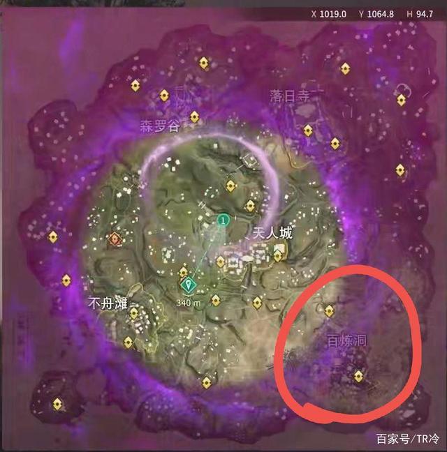 如果是想要保证不掉分,在决赛圈战斗的玩家,那么推荐你们选择前期苟住,但又要保持能够获取一定强度的资源,那么可以选择在百炼洞附近的房区作为出生点: