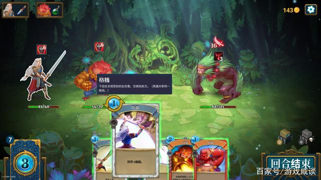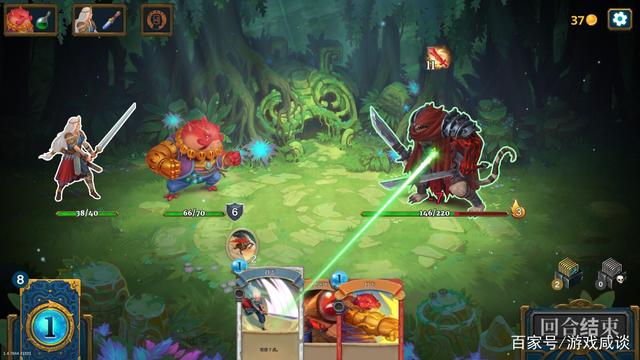战斗时我方的英雄不止一个,在其中一个英雄阵亡后系统会给予我们一些复活吟唱卡用于复活英雄,相当于给玩家一些补救的机会,增加了玩家的容错率,这点还是很不错的。英雄之间有站位的讲究,不同的英雄定位也不同,比如初始的两个英雄,其中一个战士角色的红胖子,承担着抗伤害的重任,另一个女剑士就负责后排输出伤害。英雄可以相互交换位置,卡牌中也有不少围绕这个站位机制进行操作的,站位机制也可以形成一种套路。本作的策略维度和深度都不错,深入研究的话可以有不少构筑的思路。