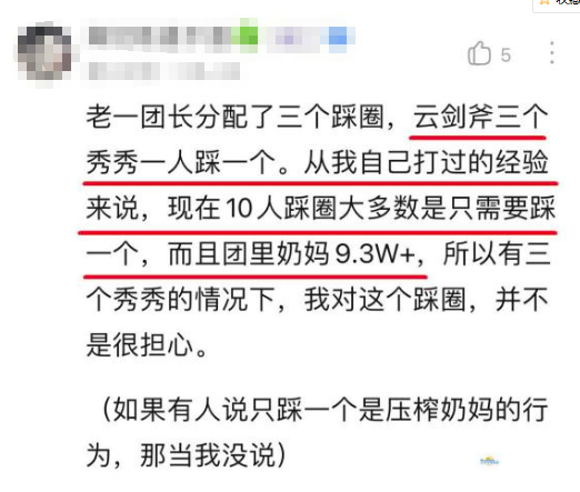 那所谓的“团长亲友”奶秀9W分呢!为什么人家还要踩3个圈啊!现在10人不都是踩1个圈吗?不会觉得踩1个圈就是压榨单奶奶妈了吧?