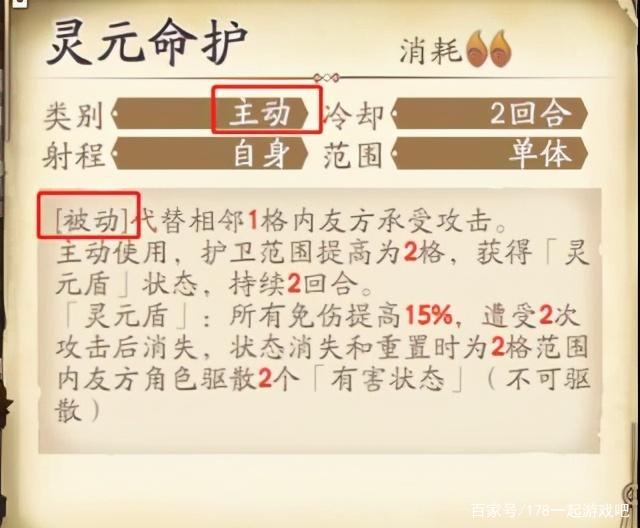 如图,虽然宇韶容的被动型“护卫”出现在主动技能“灵元命护”中,但当宇韶容被“封脉”后,其被动封脉效果立即失效,除非宇韶容主动使用“灵元命护”技能并得到“护卫”BUFF。
