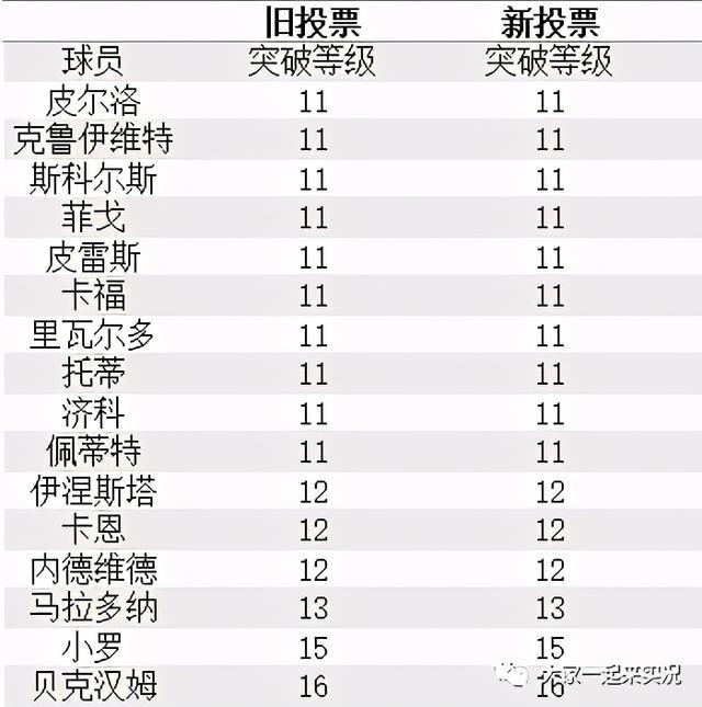 2、在削弱的传奇中,皮耶罗和卡洛斯最惨,突破都下降了2级,其余都是1级小幅削弱。