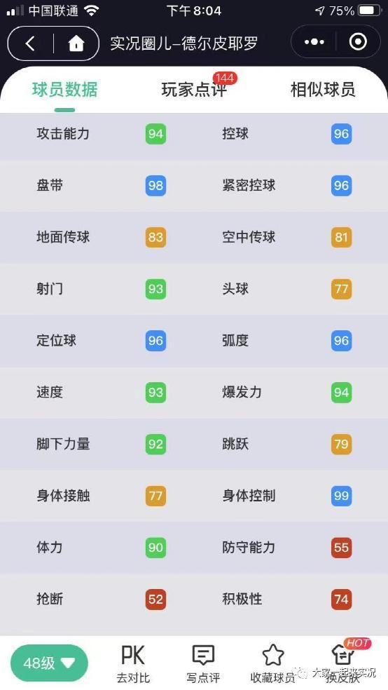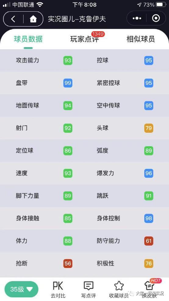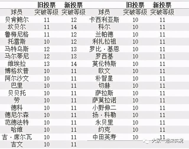 3、数据截图来自实况圈儿小程序,为便观看,每人只截出新突破满级的数据;